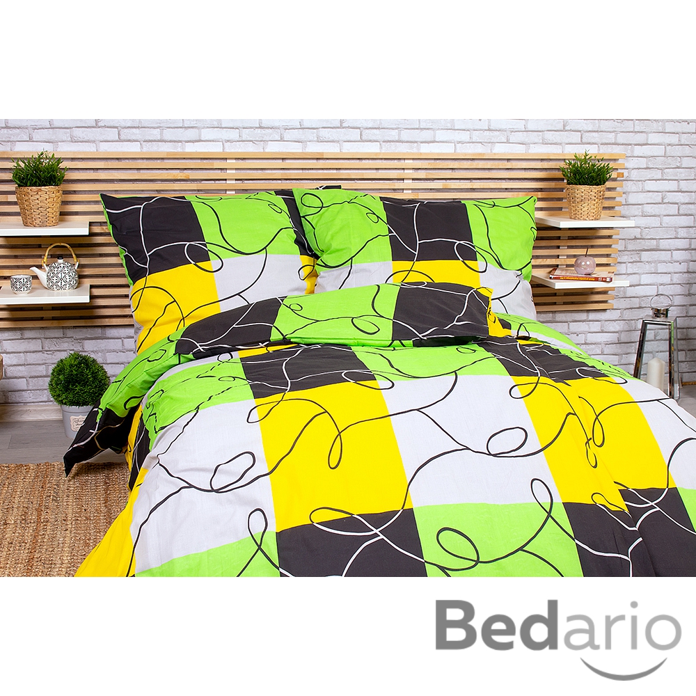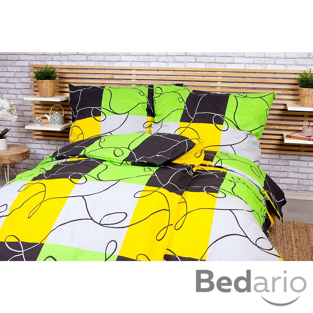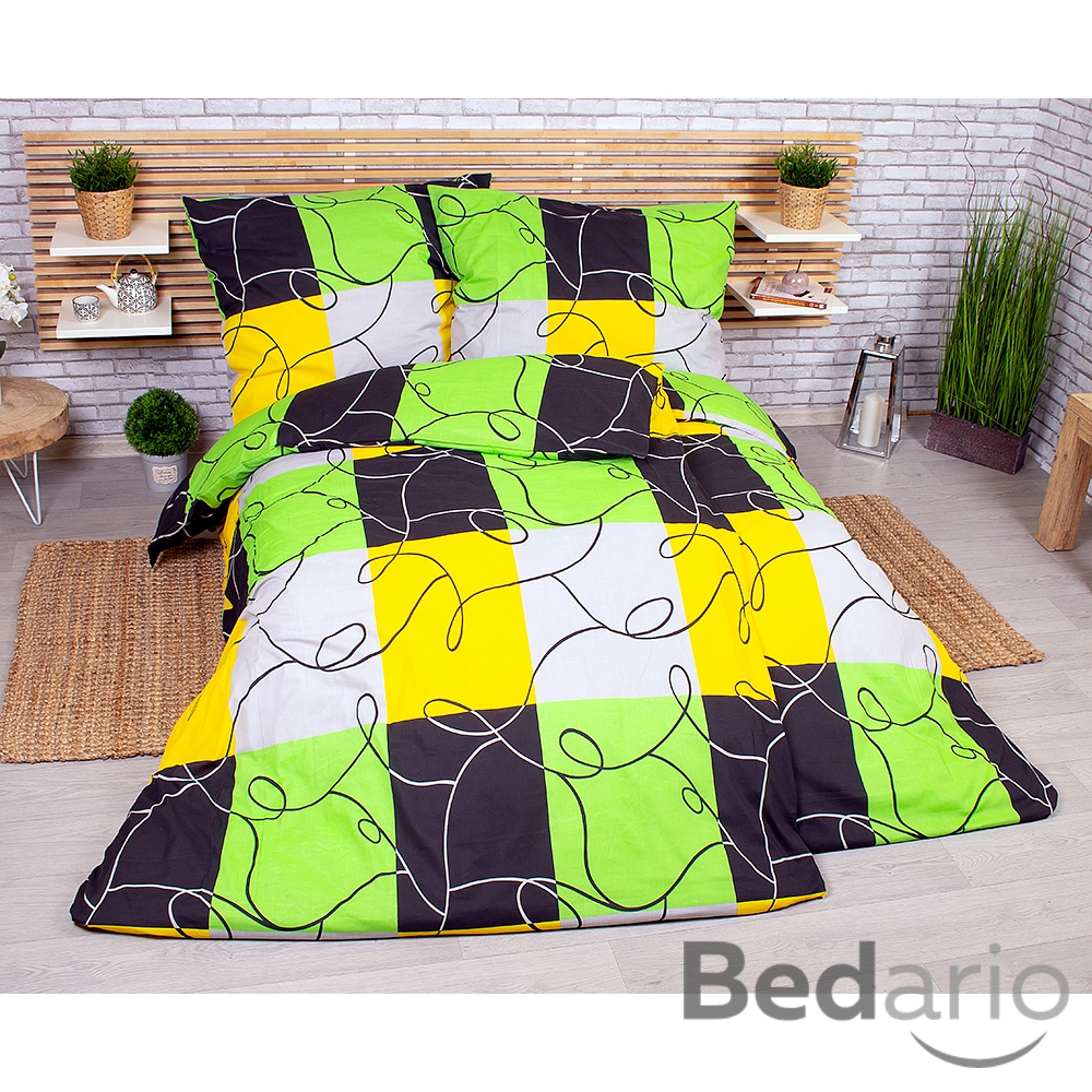 Sada povlečení na dvě lůžka 140x200+70x90 Limetkové šachy