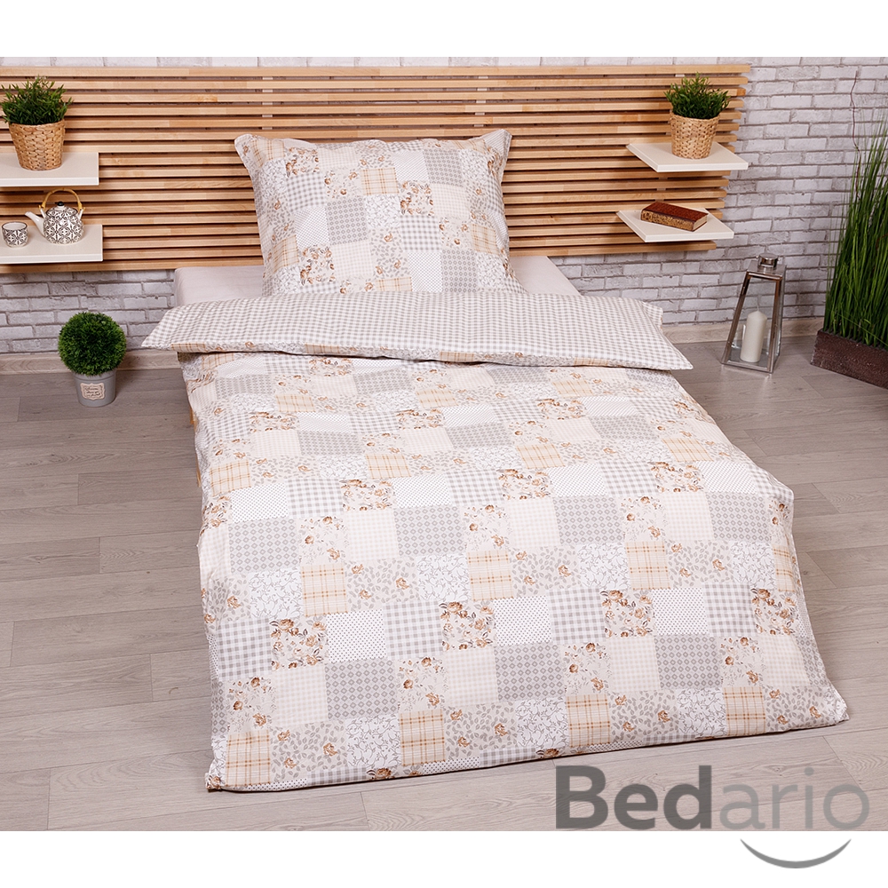 Luxusní RANFORCE Bavlněné povlečení 140x200+70x90 Patchwork béžový