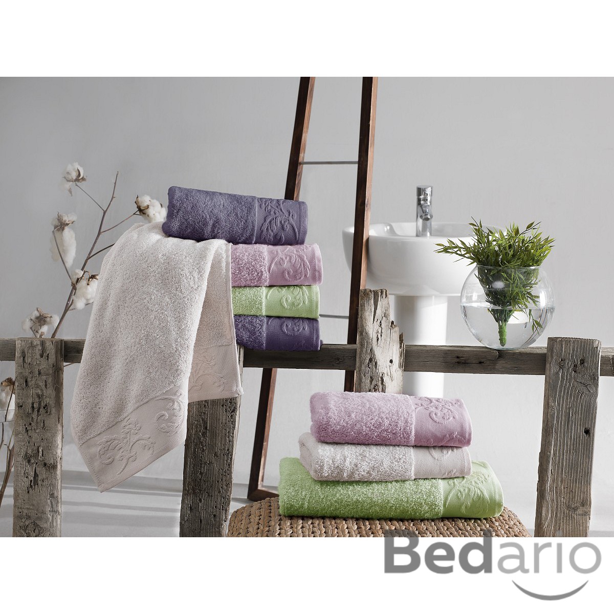 Ručníky jsou ozdobené elegantní bordurou.