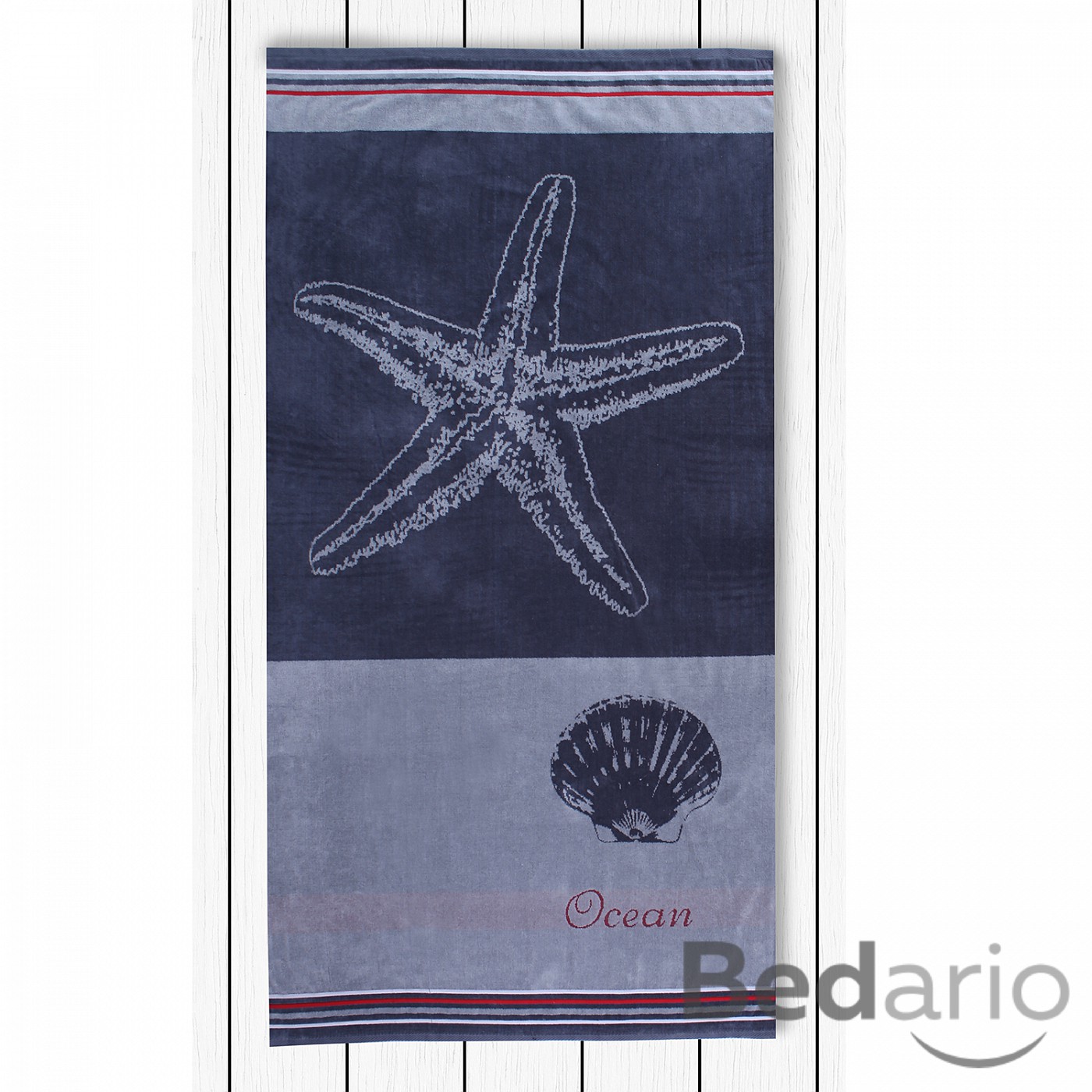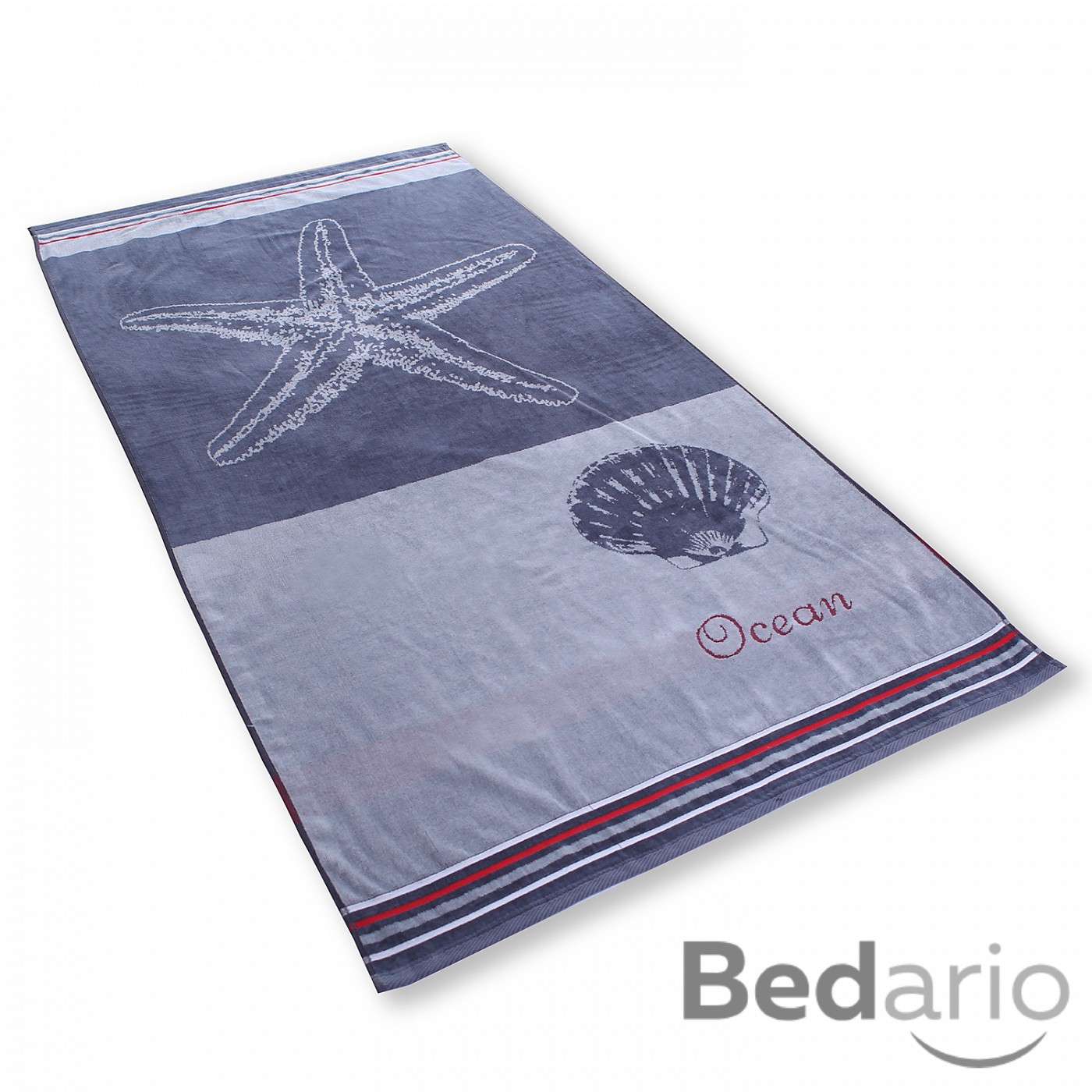 Plážová osuška z heboučkého froté materiálu. Spodní strana je hladká s úpravou proti zachytávání písku.