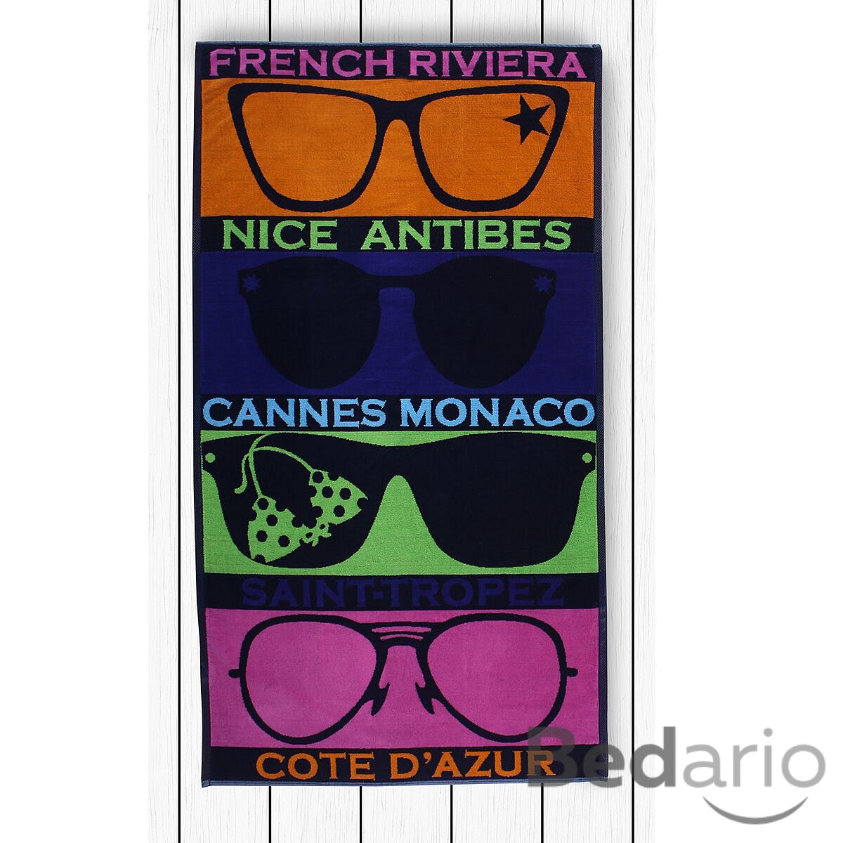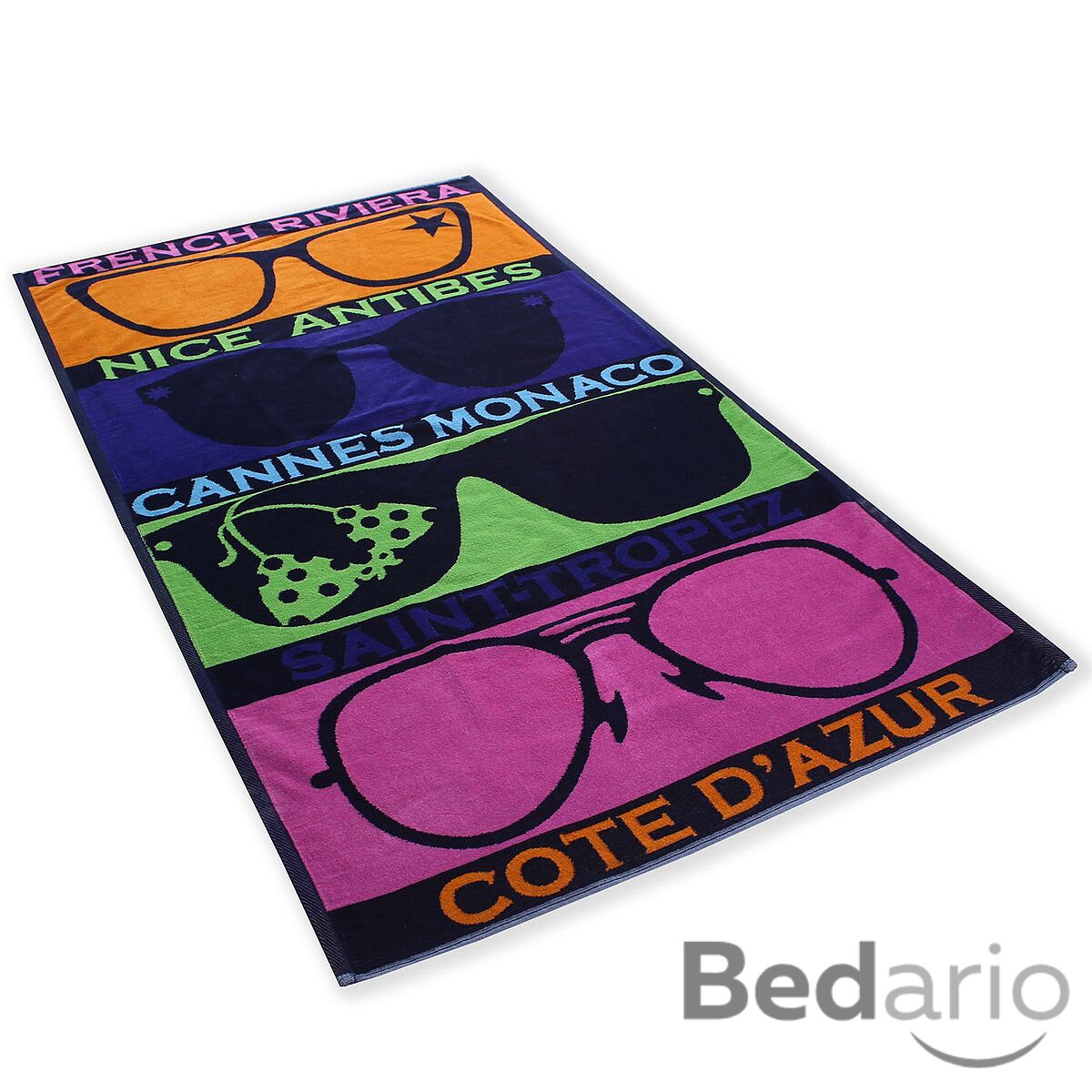 Plážová osuška z heboučkého froté materiálu. Spodní strana je hladká s úpravou proti zachytávání písku.