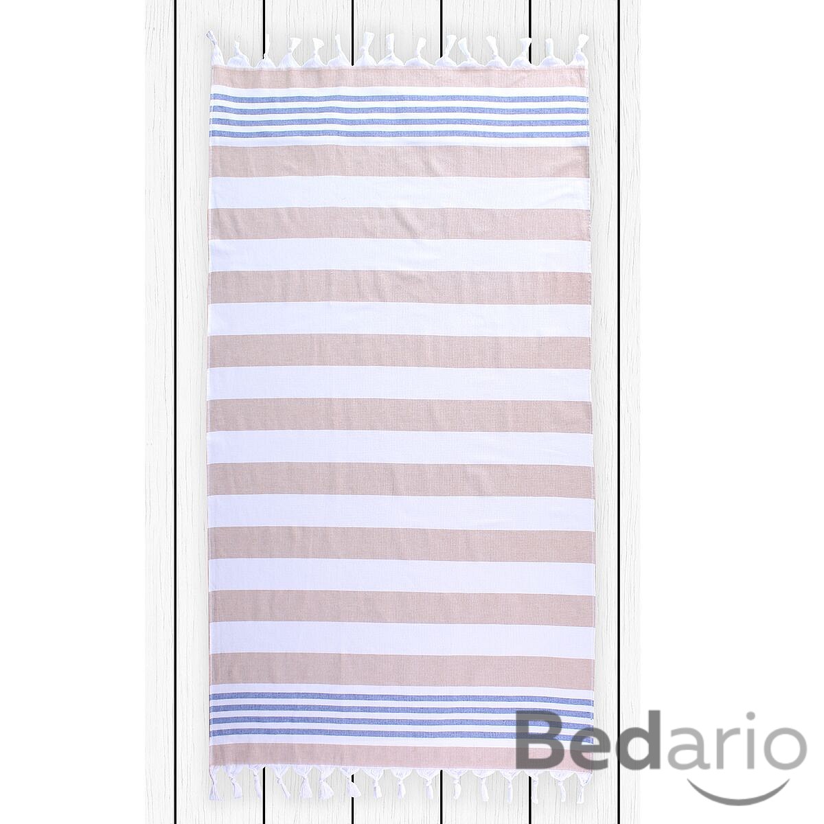 Plážová osuška z heboučkého froté materiálu. Spodní strana je hladká s úpravou proti zachytávání písku.