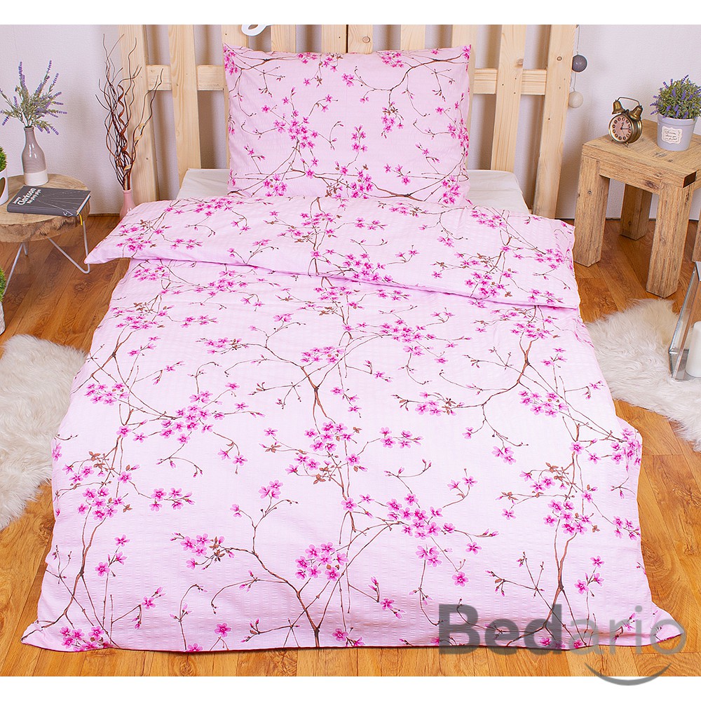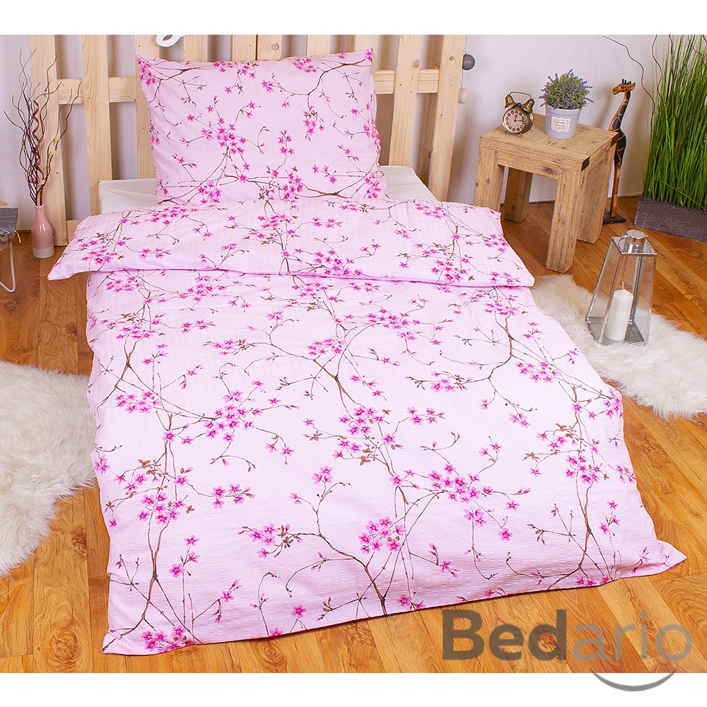 Barevné povlečení nemusí nutně znamenat divočinu. Krepové povlečení, kde je hlavním prvkem růžová sakura , působí jemným čistým dojmem a zapadne do každé ložnice nebo studentského pokoje.