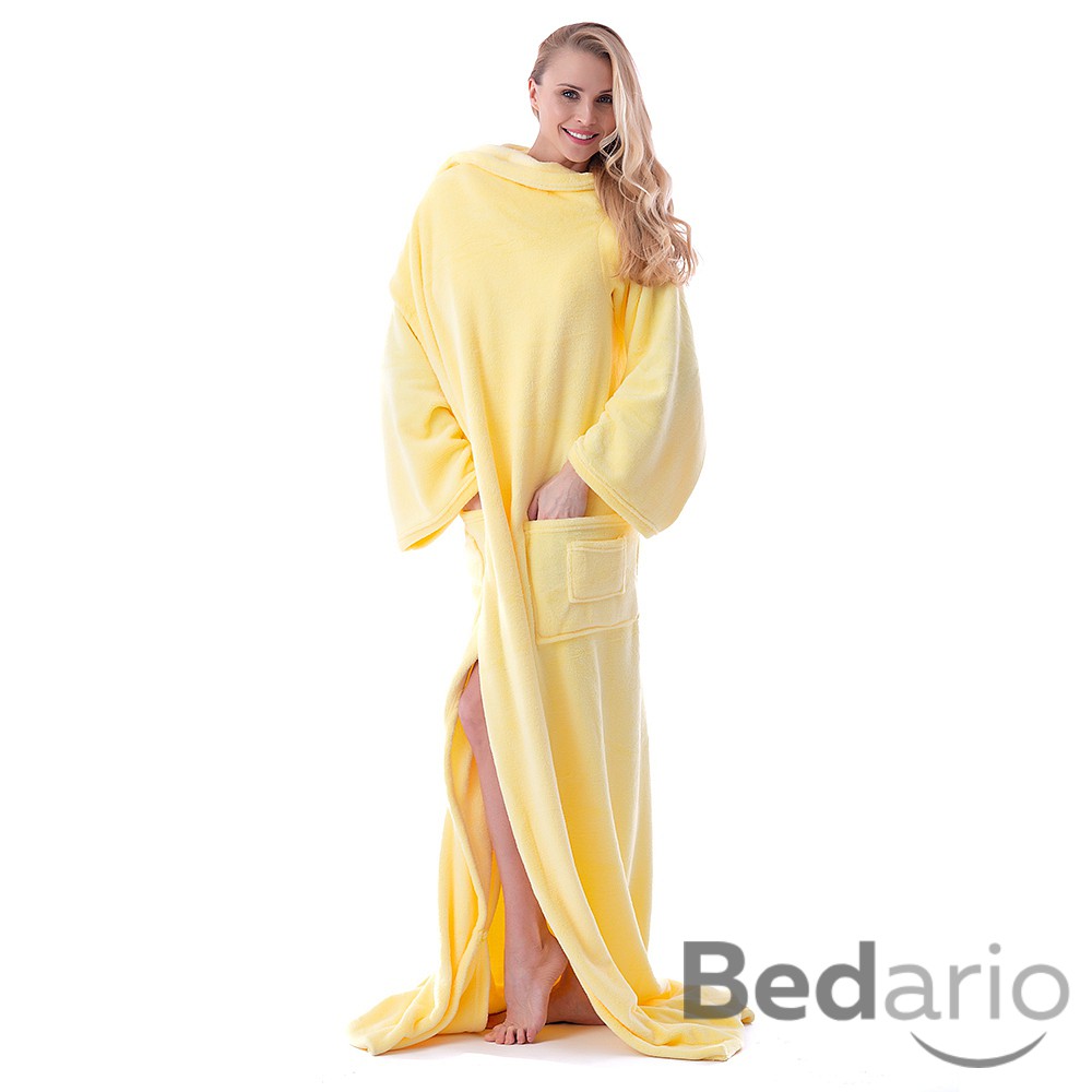 Jedinečná deka, s rukávy i kapsou na nohy! Hodí se do obývacího pokoje, na terasu, i na chalupu.