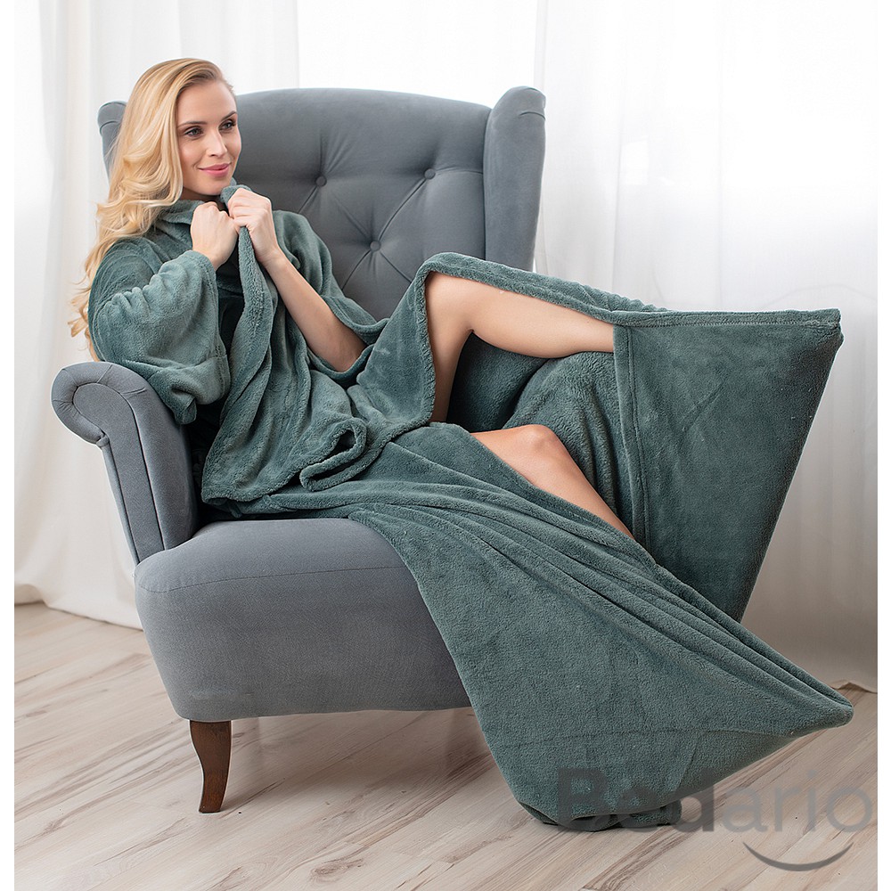 Jedinečná deka, s rukávy i kapsou na nohy! Hodí se do obývacího pokoje, na terasu, i na chalupu.