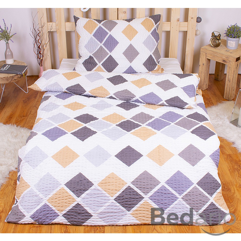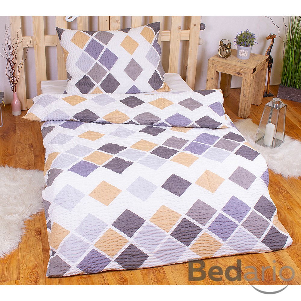 Krepové povlečení PREMIUM 140x200+70x90 Kary šedé