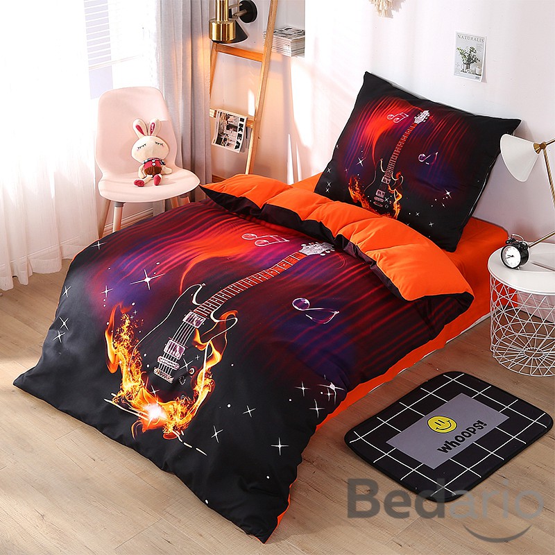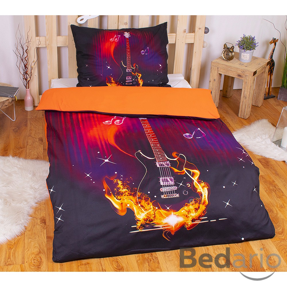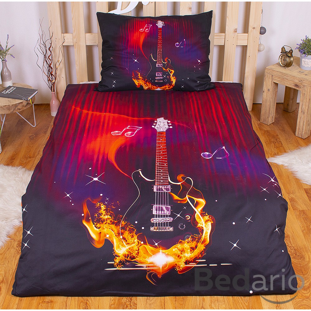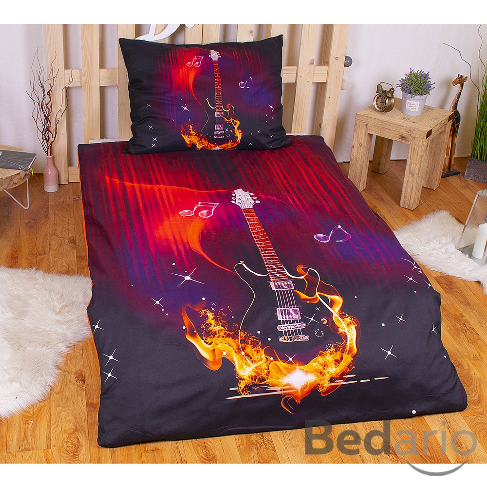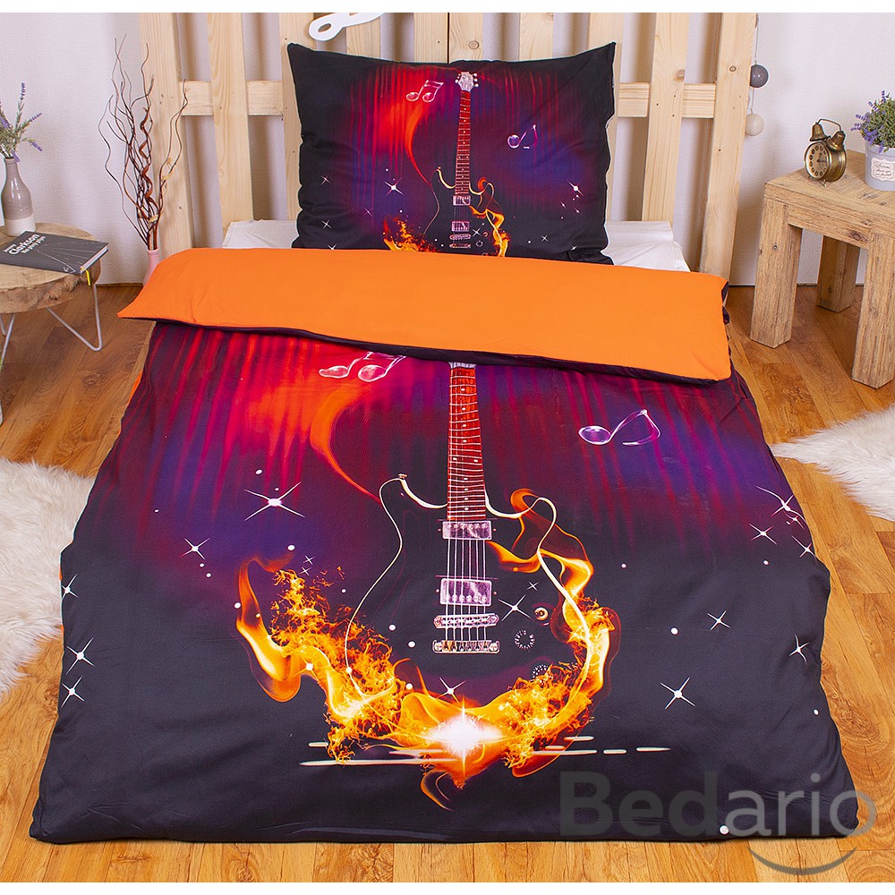 3D povlečení 140x200+70x90 Ohnivá kytara