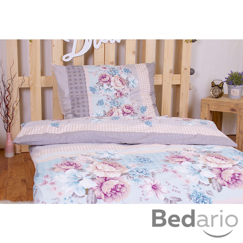 Krepové povlečení ECONOMY 140x200+70x90 Květované pruhy