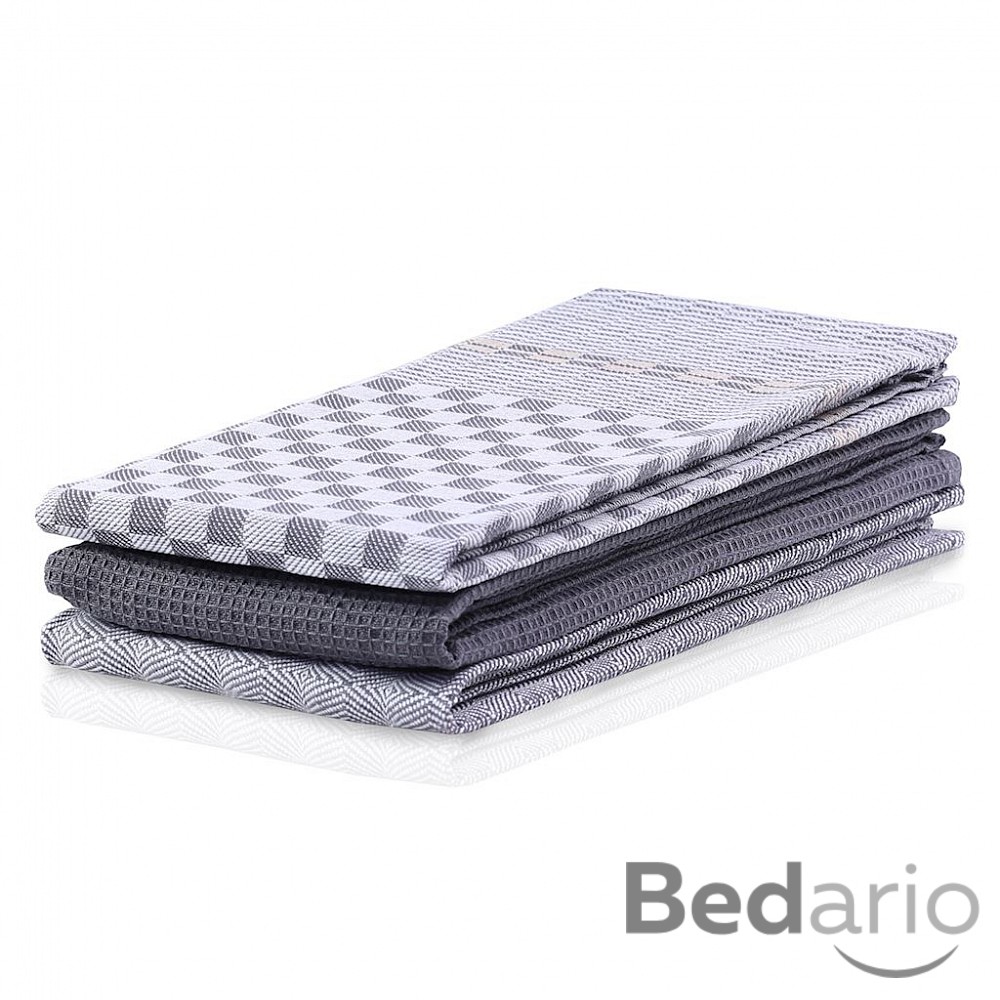 Zvýhodněná sada 3ks kuchyňských utěrek LOUIE COLLECTION - Tmavě šedá variace