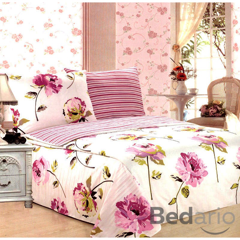 Oboustranné povlečení - z druhé strany proužky v ladících barvách.
