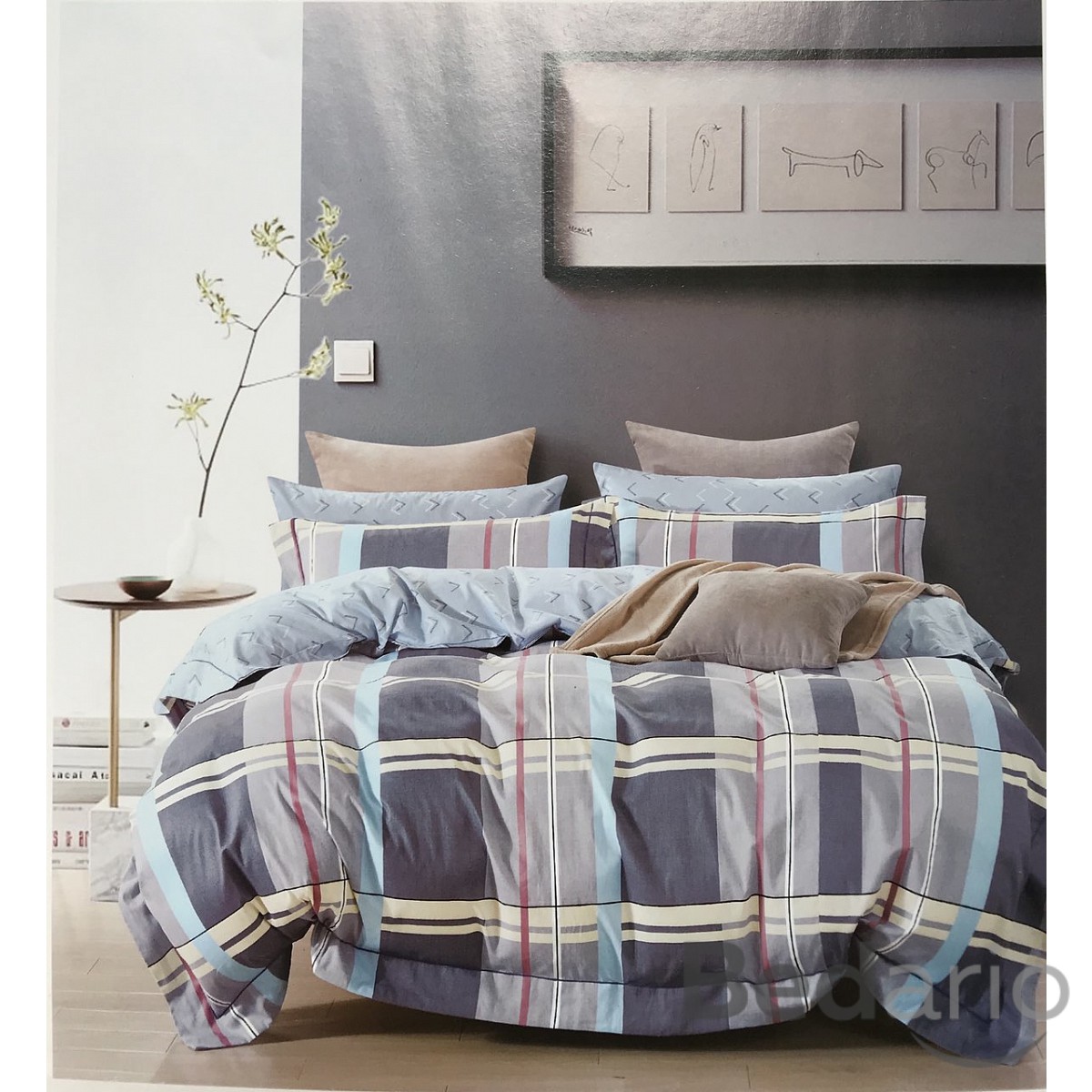 Bavlněné povlečení 140x200+70x90 Šedomodré karo