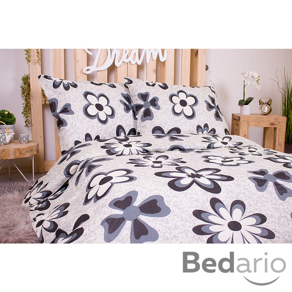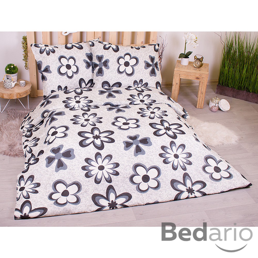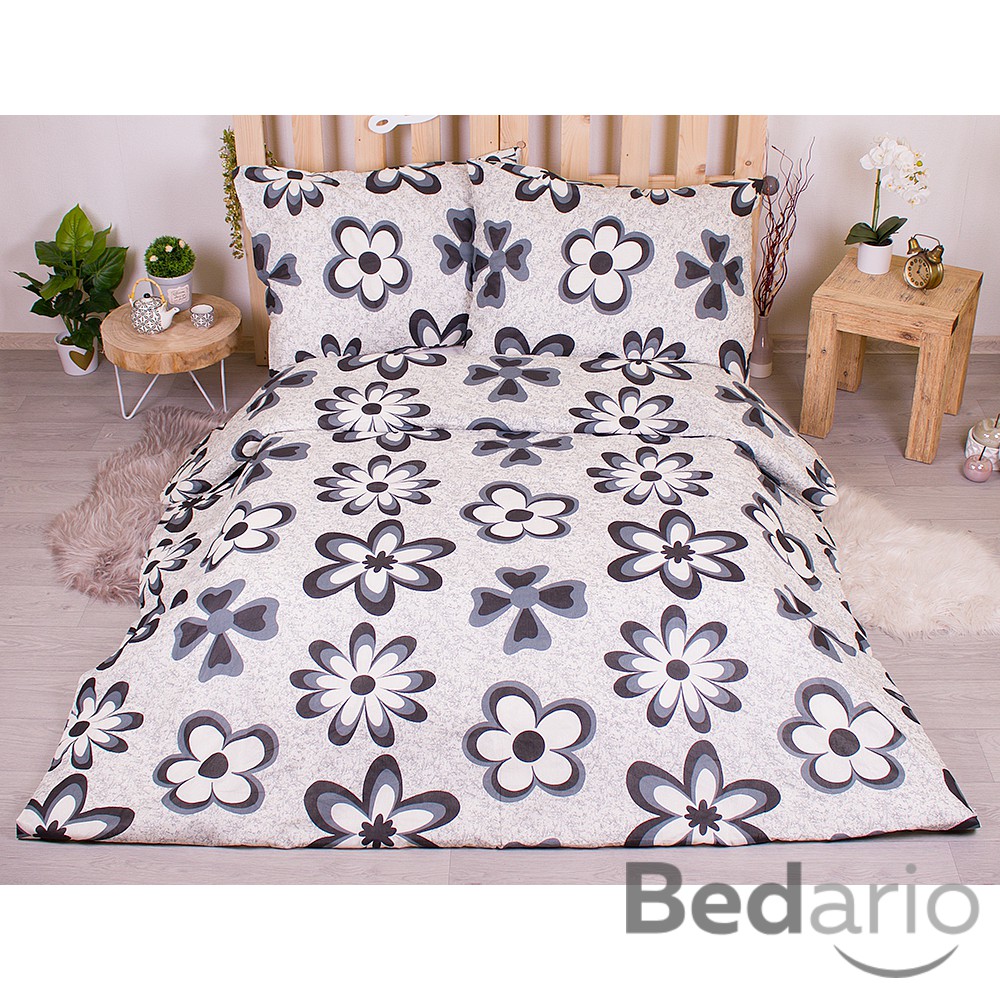 Francouzské bavlněné povlečení economy 220x200+70x90 Flora černé