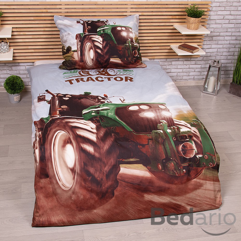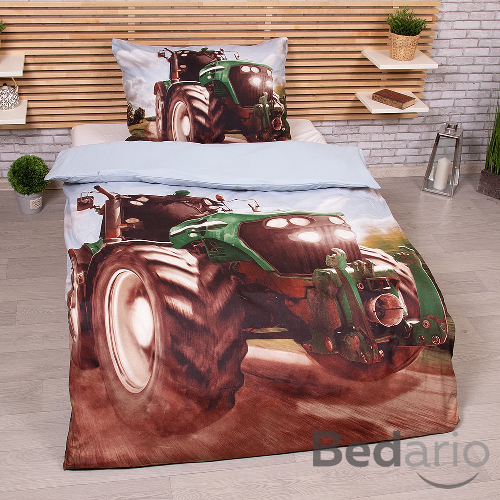 3D povlečení 140x200+70x90 Traktor green