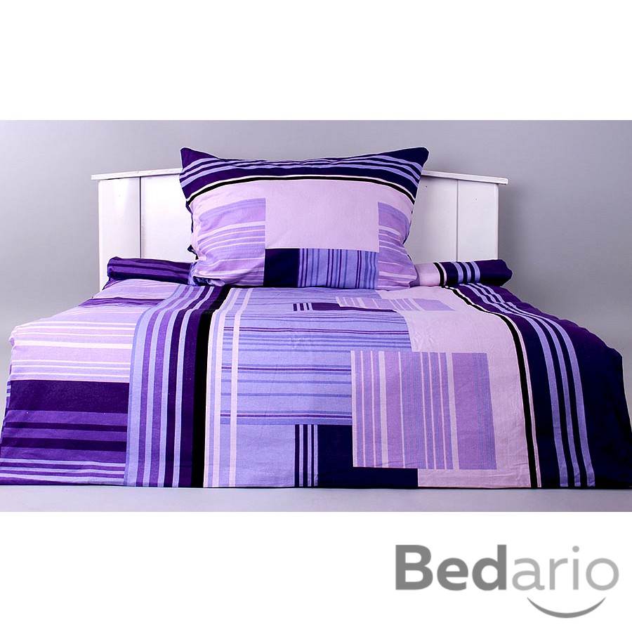 Odstíny fialové barvy a originální vzor - skvělá kombinace nejen do moderních ložnic.