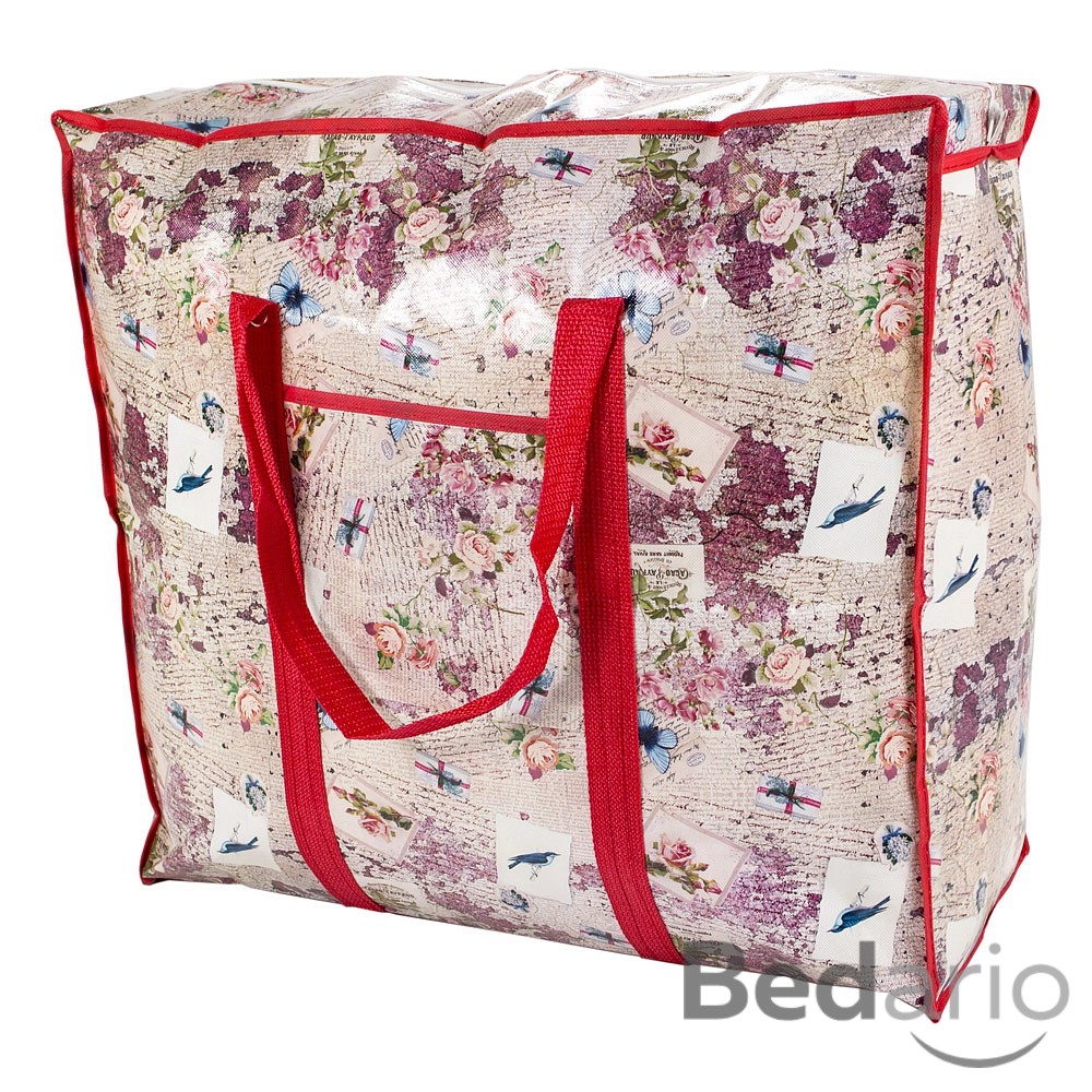 **Velká pevná a praktická taška se zipem.** **Ideální pomocník** na velké nákupy, skladování lůžkovin atd. **Vlastnosti** - Lehká - Omyvatelná - Skladná V horní části zip. Pohodlná pevná ucha pro snadné nošení. **Rozměry** (šířka x výška x hloubka) - 60 x 55 x 24 cm