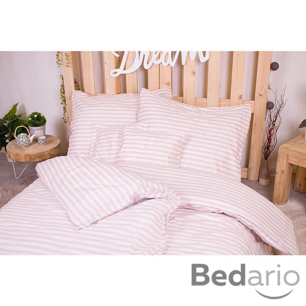 Sedmidílná sada hebkého povlečení s pruhovaným vzorem 140x200+70x90 Starorůžová