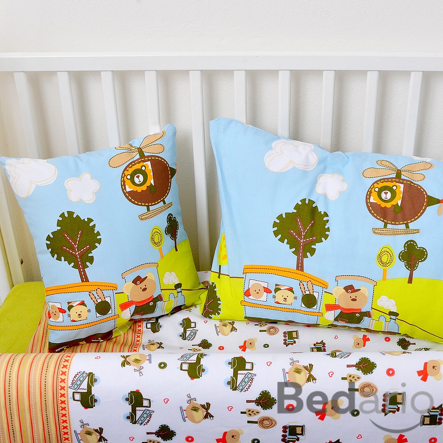 Dětské bavlněné povlečení 90x135+45x65 - Medvídek a dopravní prostředky