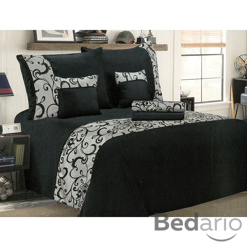 Umírněnost a čistota detailu - černá barva doplněná kontrastní bílo-černou ornamentální bordurou.