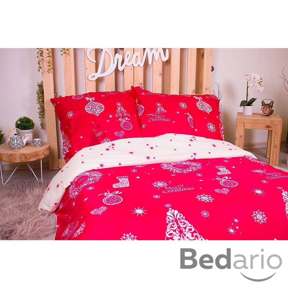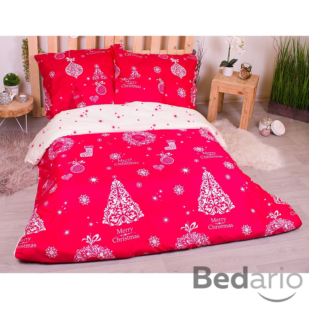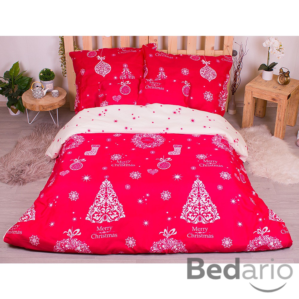Šestidílná sada francouzské povlečení s vánočním motivem 220x200+70x90 Červená