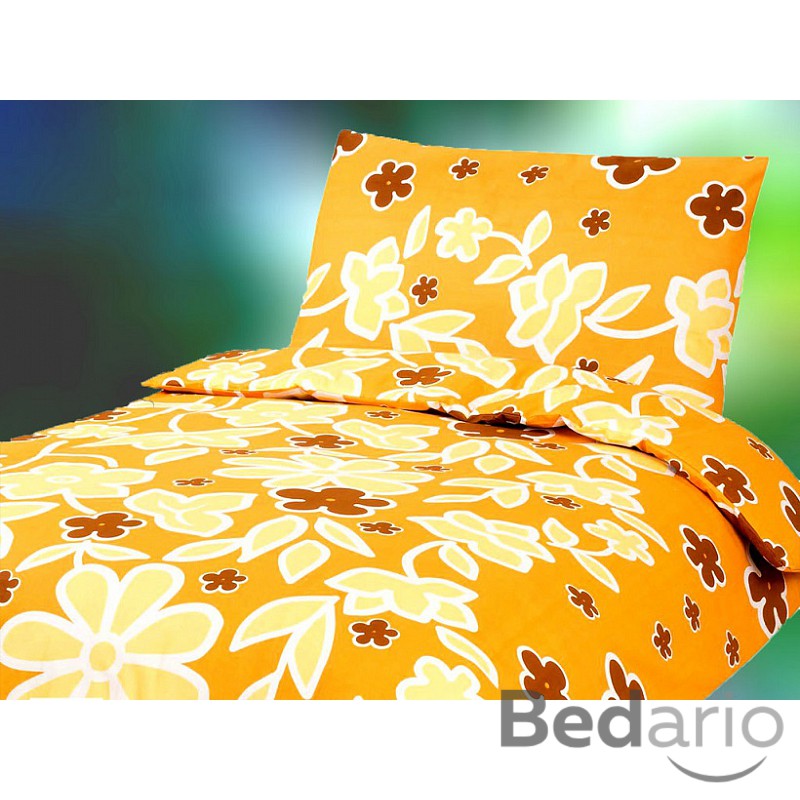 Zářivě žluté květy na oranžovém podkladě vnesou do vaší ložnice radost a letní náladu.