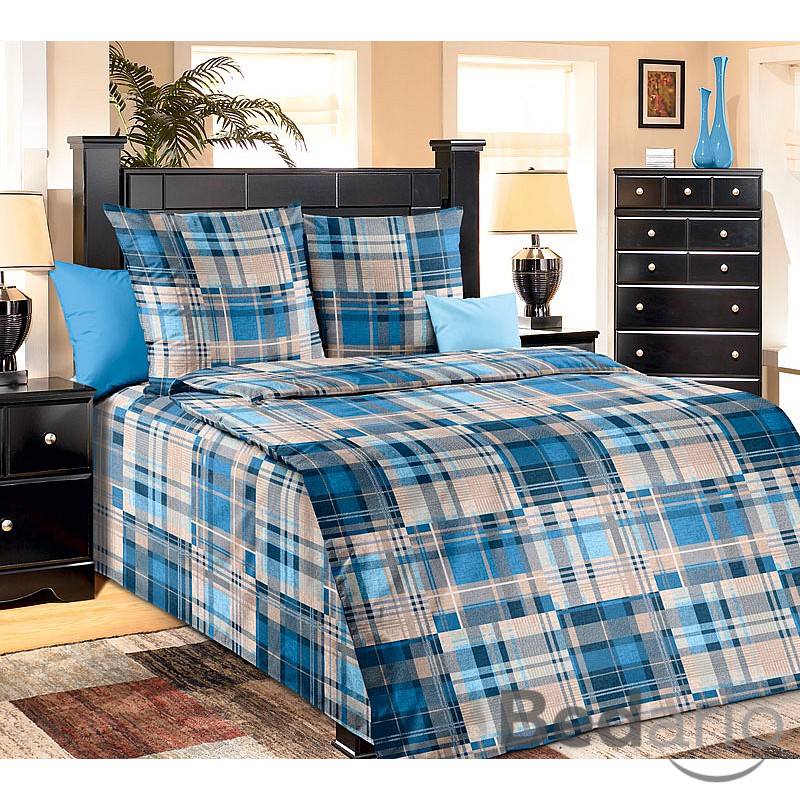 Bavlněné povlečení KARO modré 140x200+70x90