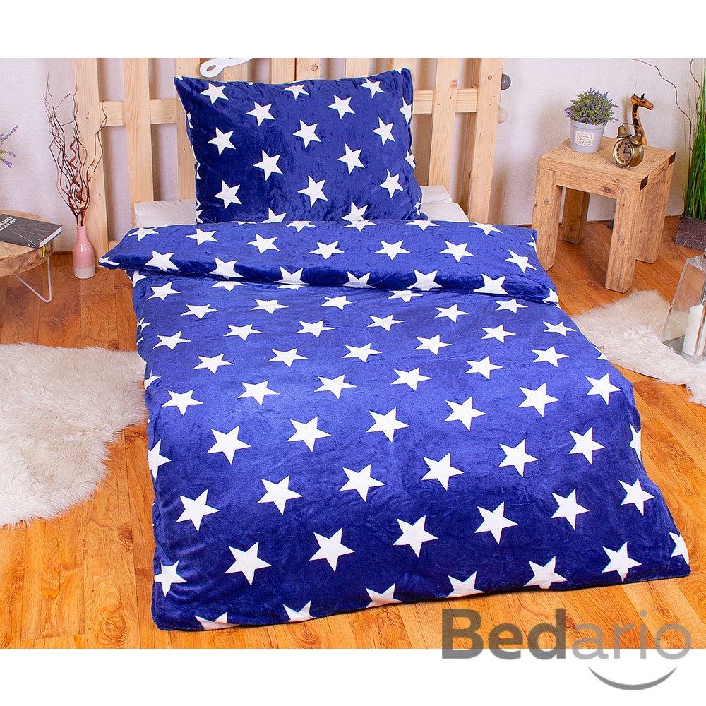 Mikroplyšové povlečení Premium 140x200+70x90 Modré hvězdy