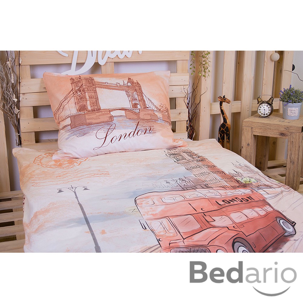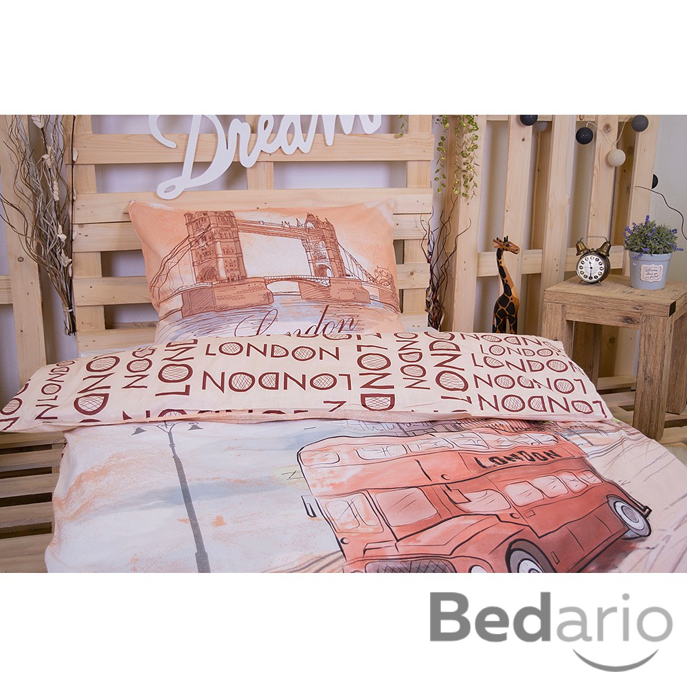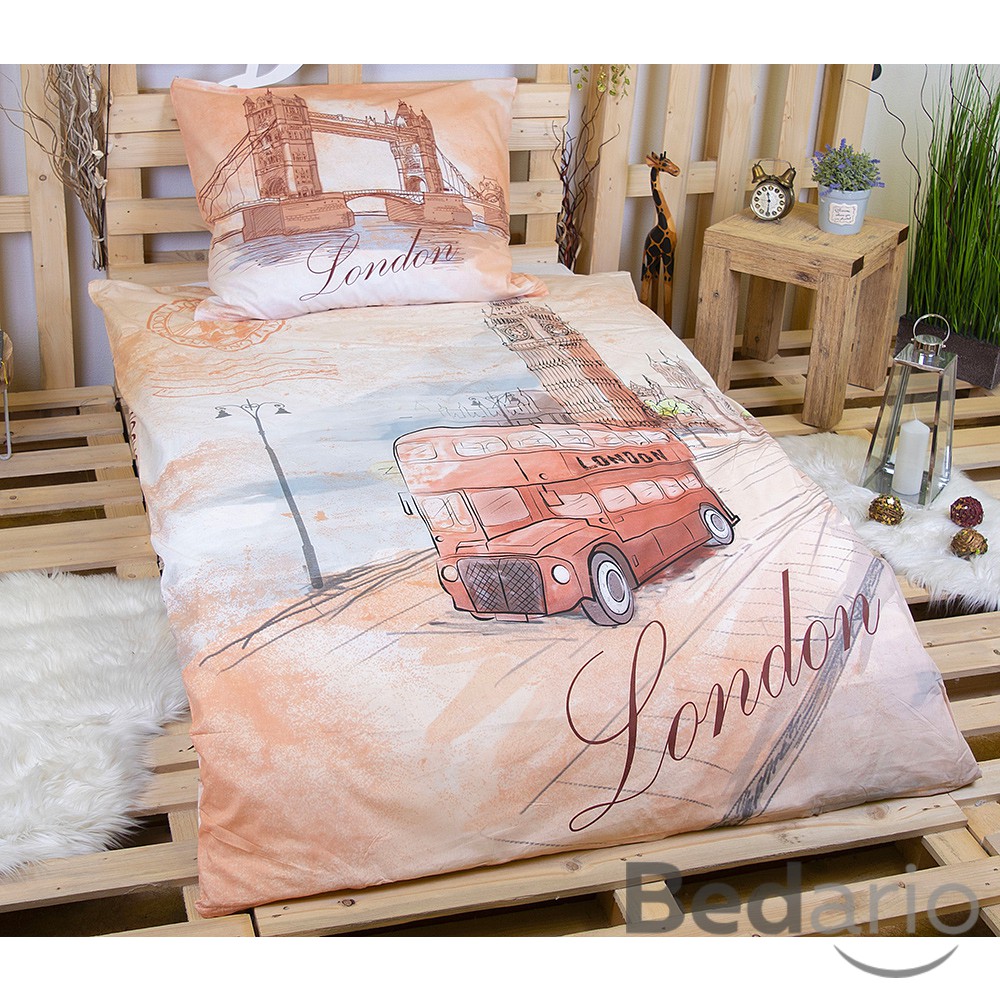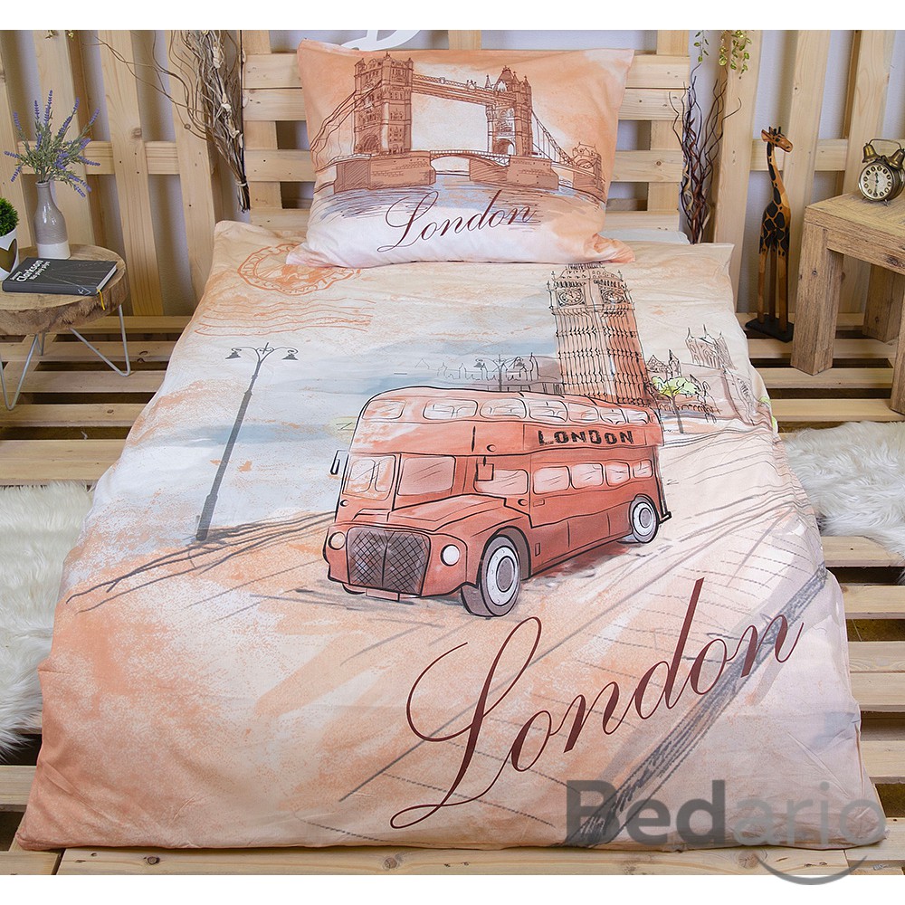 **Londýn ve své nejslavnější podobě - s Big Benem, Tower Bridge i dvoupatrovým autobusem. ** Povlečení je vyrobeno z kvalitní 100% bavlny a má praktické **zapínání na zip**. **Sada obsahuje:** - 1 ks povlečení na přikrývku 140×200 cm - 1 ks povlečení na polštář 70x90 cm **Materiál:** - 100% bavlna **Údržba:** - doporučená teplota praní: 40°C - před prvním použitím doporučujeme prát samostatně po rubu, se zapnutými uzávěry v pracích prostředcích na jemné a barevné prádlo