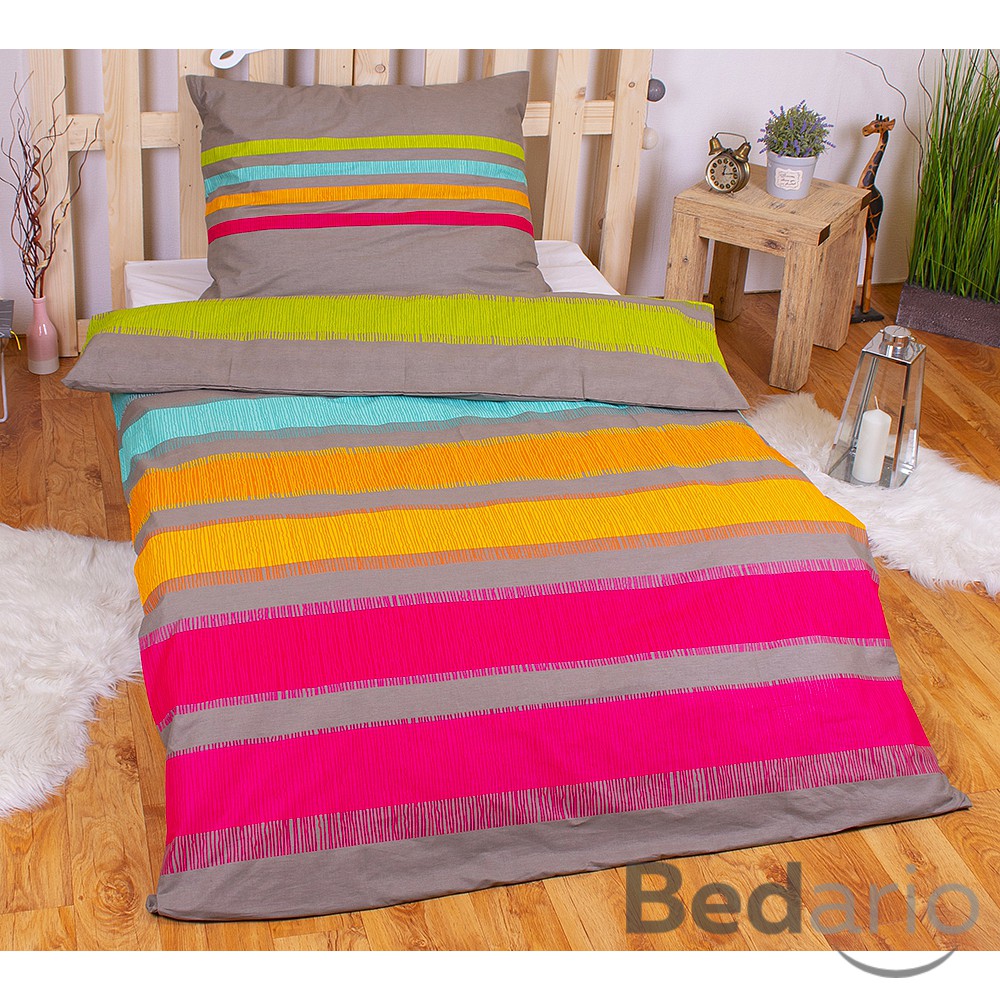 Pruhy v pestrých barvách rozehrají vaší ložnici.