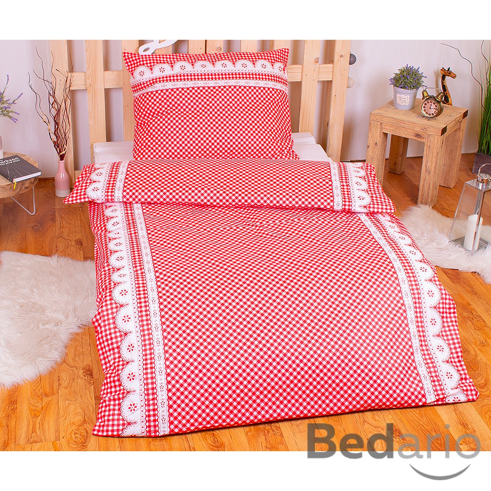 Krásné bavlněné povlečení selského stylu zútulní Vaši ložnici. Tradiční kanafas laděný kombinací červené a bílé barvy s motivem kostiček a krajky navodí ve Vaší ložnici jedinečnou atmosféru klidu a pohody.